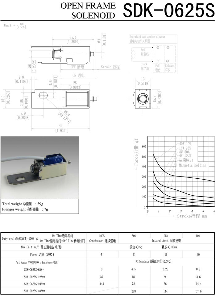 詳細信息 SDK-0625S-6A,SDK-0625S-12A,SDK-0625S-24A,SDK-0625S-48A,直動電磁鐵