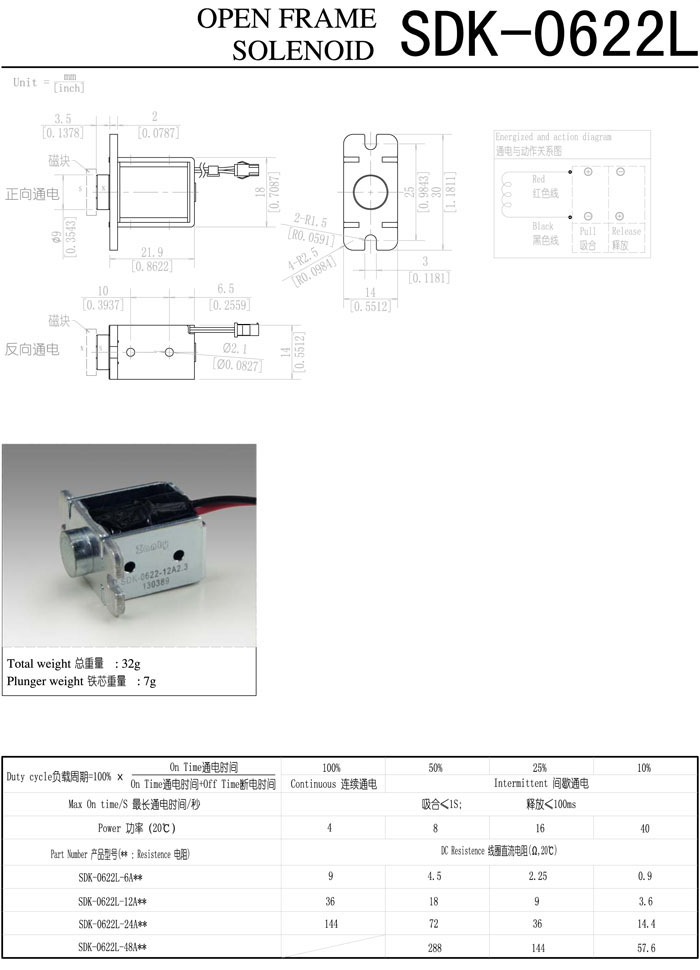 詳細(xì)信息 SDK-0622L-6A,SDK-0622L-12A,SDK-0622L-24A,SDK-0622L-48A,直動電磁鐵