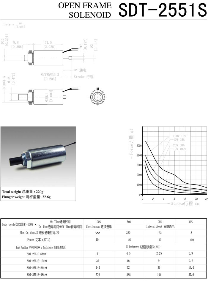 詳細信息 SDT-2551S-6A,SDT-2551S-12A,SDT-2551S-24A,SDT-2551S-48A,直動電磁鐵