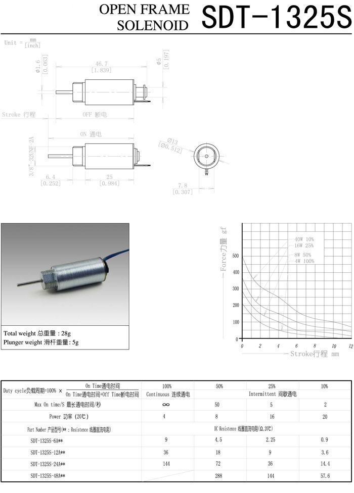 詳細信息 SDT-1325S-6A,SDT-1325S-12A,SDT-1325S-24A,SDT-1325S-48A,直動電磁鐵
