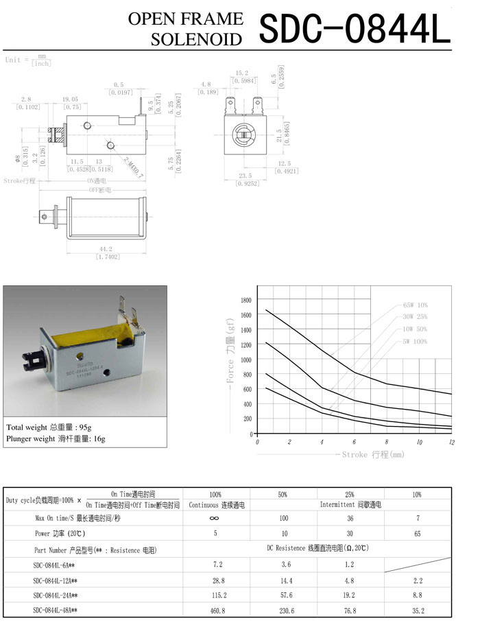 詳細信息 SDC-0844L-6A,SDC-0844L-12A,SDC-0844L-24A,SDC-0844L-48A,直動電磁鐵