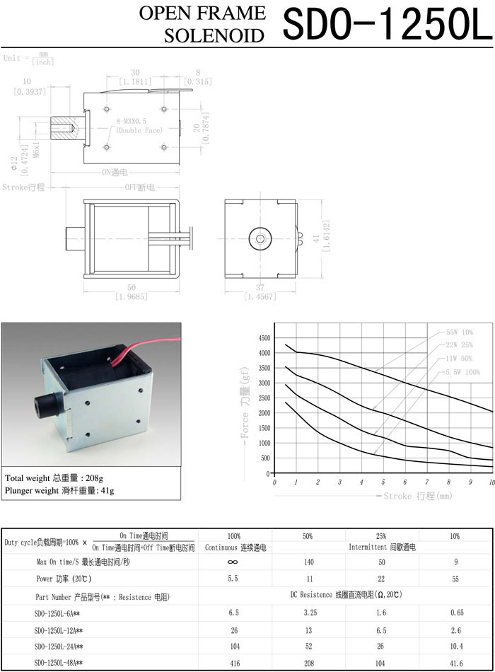 詳細(xì)信息 SDO-1250L-06A,SDO-1250L-12A,SDO-1250L-24A,SDO-1250L-48A,直動(dòng)電磁鐵