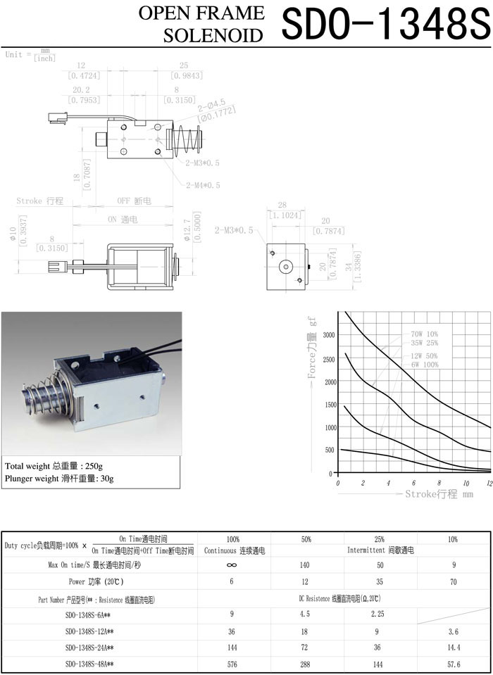 SDO-1348S-6A,SDO-1348S-12A,SDO-1348S-24A,SDO-1348S-48A,直動電磁鐵