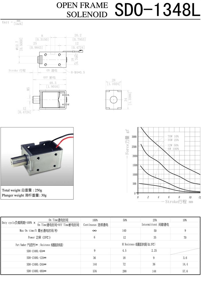 SDO-1348L-6A,SDO-1348L-12A,SDO-1348L-24A,SDO-1348L-48A,直動電磁鐵