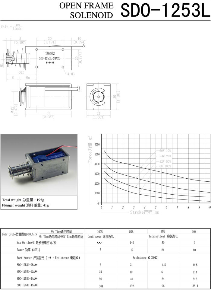 詳細(xì)信息 SDO-1253L-06A,SDO-1253L-12A,SDO-1253L-24A,SDO-1253L-48A,直動電磁鐵