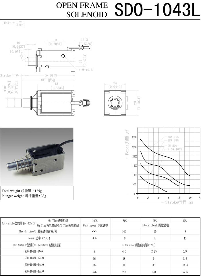 SDO-1043L-6A,SDO-1043L-12A,SDO-1043L-24A,SDO-1043L-48A,直動(dòng)電磁鐵
