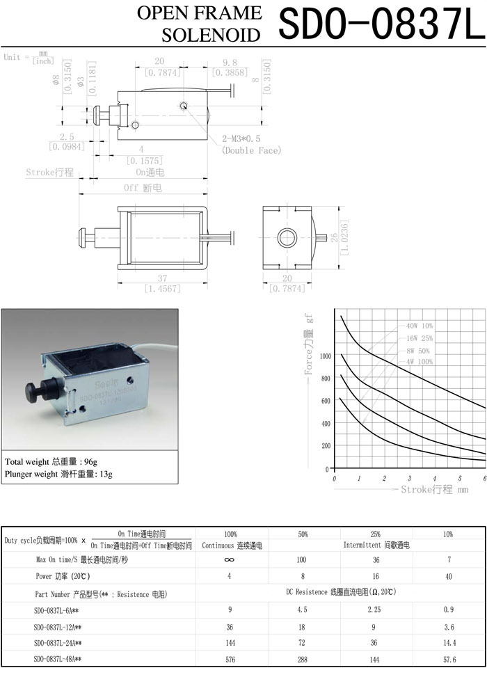 詳細(xì)信息 SDO-0837L-6A,SDO-0837L-12A,SDO-0837L-24A,SDO-0837L-48A,直動(dòng)電磁鐵