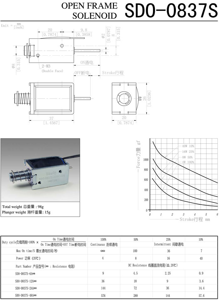 詳細(xì)信息 SDO-0837S-6A,SDO-0837S-12A,SDO-0837S-24A,SDO-0837S-48A,直動(dòng)電磁鐵