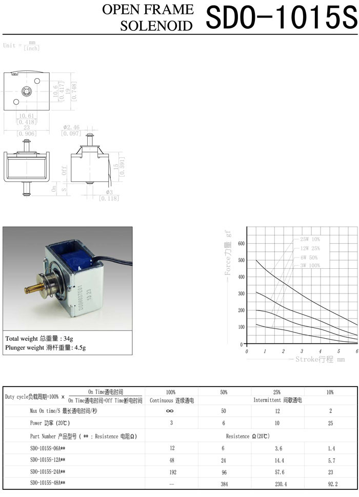 詳細(xì)信息 SDO-1015S-06A,SDO-1015S-12A,SDO-1015S-24A,SDO-1015S-48A,直動(dòng)電磁鐵