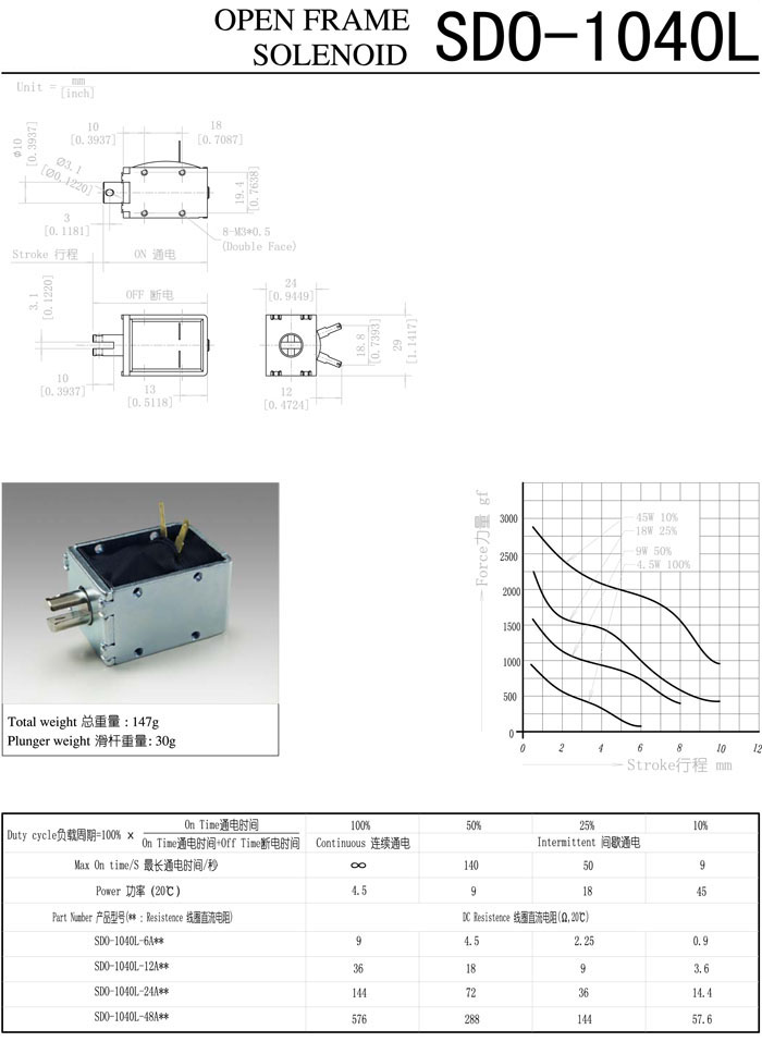 詳細(xì)信息 SDO-1040L-6A,SDO-1040L-12A,SDO-1040L-24A,SDO-1040L-48A,直動(dòng)電磁鐵