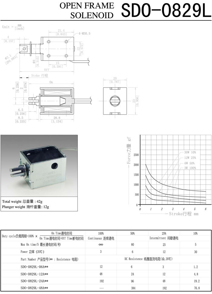 詳細(xì)信息 SDO-0829L-06A,SDO-0829L-12A,SDO-0829L-24A,SDO-0829L-48A,直動(dòng)電磁鐵