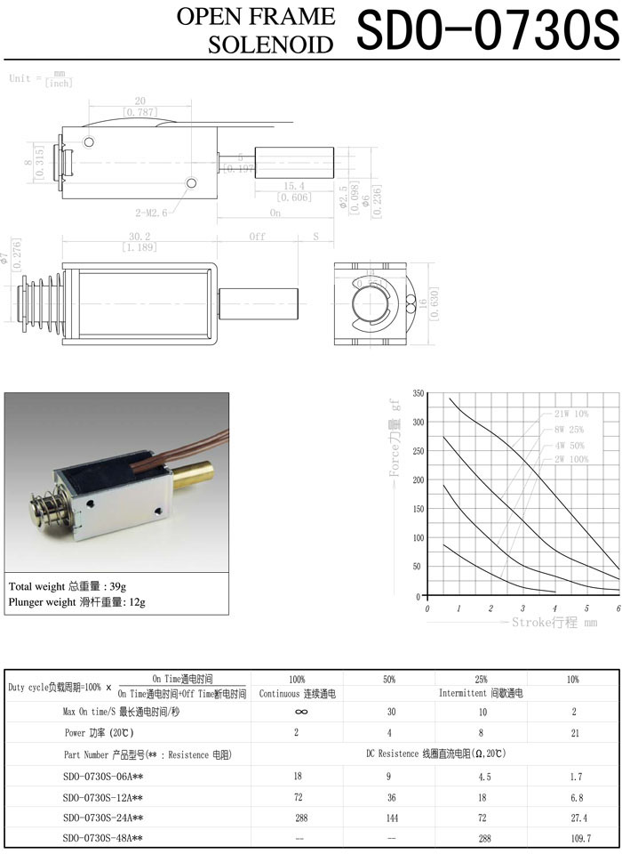 詳細(xì)信息 SDO-0730S-06A,SDO-0730S-12A,SDO-0730S-24A,SDO-0730S-48A,直動電磁鐵