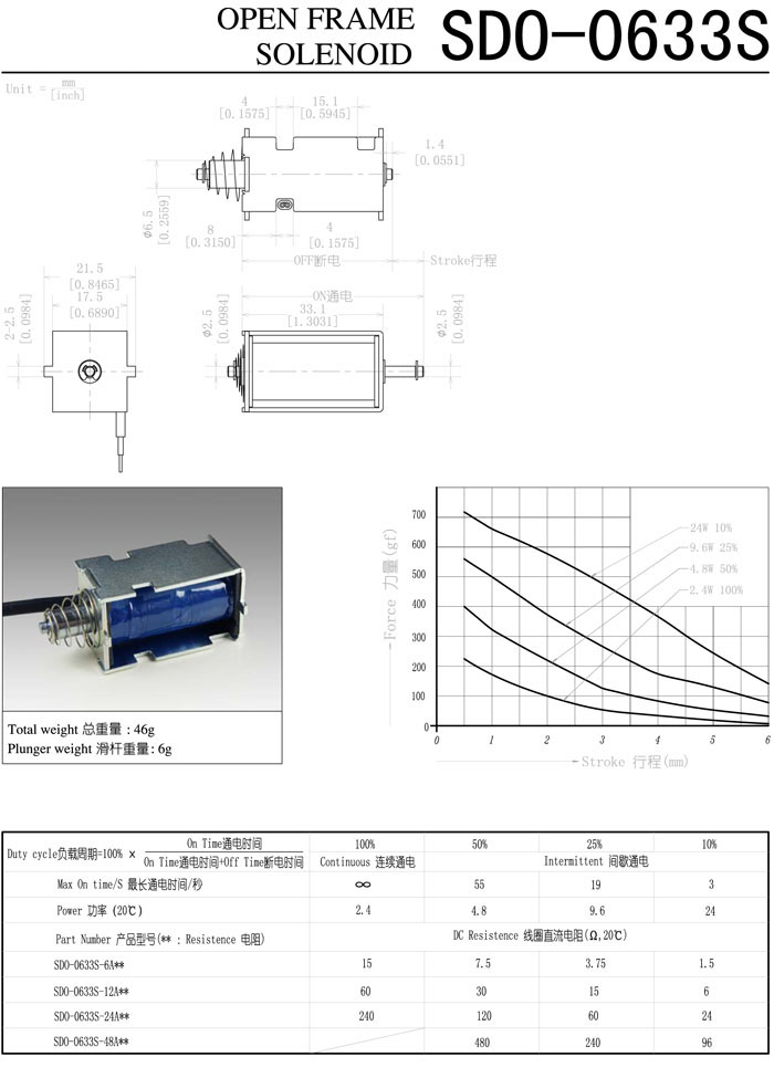 詳細(xì)信息 SDO-0633S-6A,SDO-0633S-12A,SDO-0633S-24A,SDO-0633S-48A,直動(dòng)電磁鐵