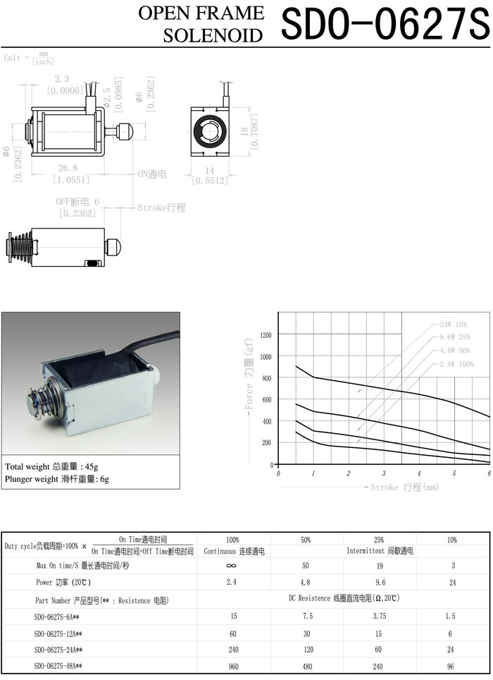 詳細(xì)信息 SDO-0627S-6A,SDO-0627S-12A,SDO-0627S-24A,SDO-0627S-48A,直動(dòng)電磁鐵