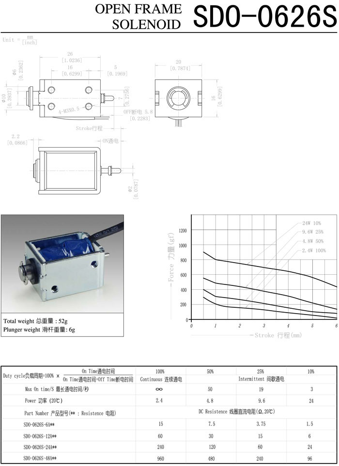 SDO-0626S-6A,SDO-0626S-12A,SDO-0626S-24A,SDO-0626S-48A,直動(dòng)電磁鐵