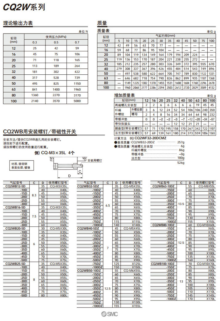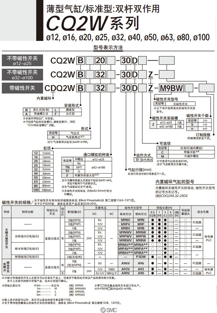 CDQ2WLH63-100,CDQ2WLH80-100,CDQ2WLH100-100,CDQ2WAH32-100,CDQ2WAH40-100,CDQ2WAH50-100,CDQ2WAH63-100,SMC薄型氣缸