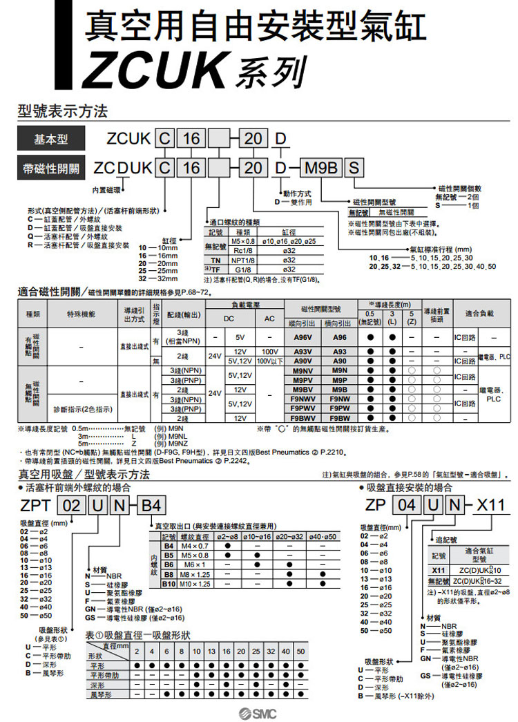 ZCUKC,ZCUKD,ZCUKQ,ZCUKR,ZCDUKC,ZCDUKD,ZCDUKQ,ZCDUKR,ZCUKC10-5D,ZCDUKC10-5D,SMC自由安裝型氣缸