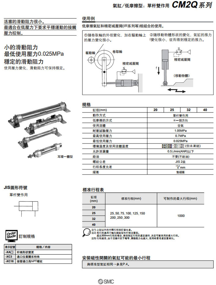 CDM2QB,CDM2QL,CDM2QF,CDM2QG,CDM2QC,CDM2QD,CDM2QU,CDM2QT,CDM2QE,CDM2QB20-100,SMC低摩擦型氣缸