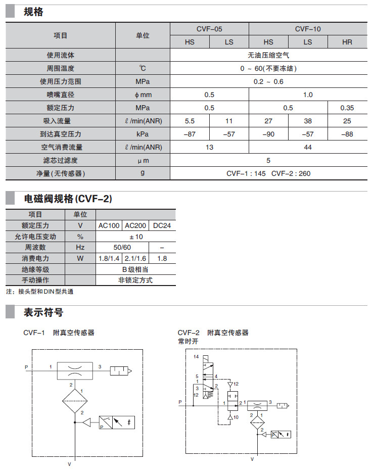CVF-1-05-H,CVF-1-10-H,CVF-2-05-H,CVF-2-10-H,CVF-1-10-L,CVF-2-05-L,噴射式真空發(fā)生器
