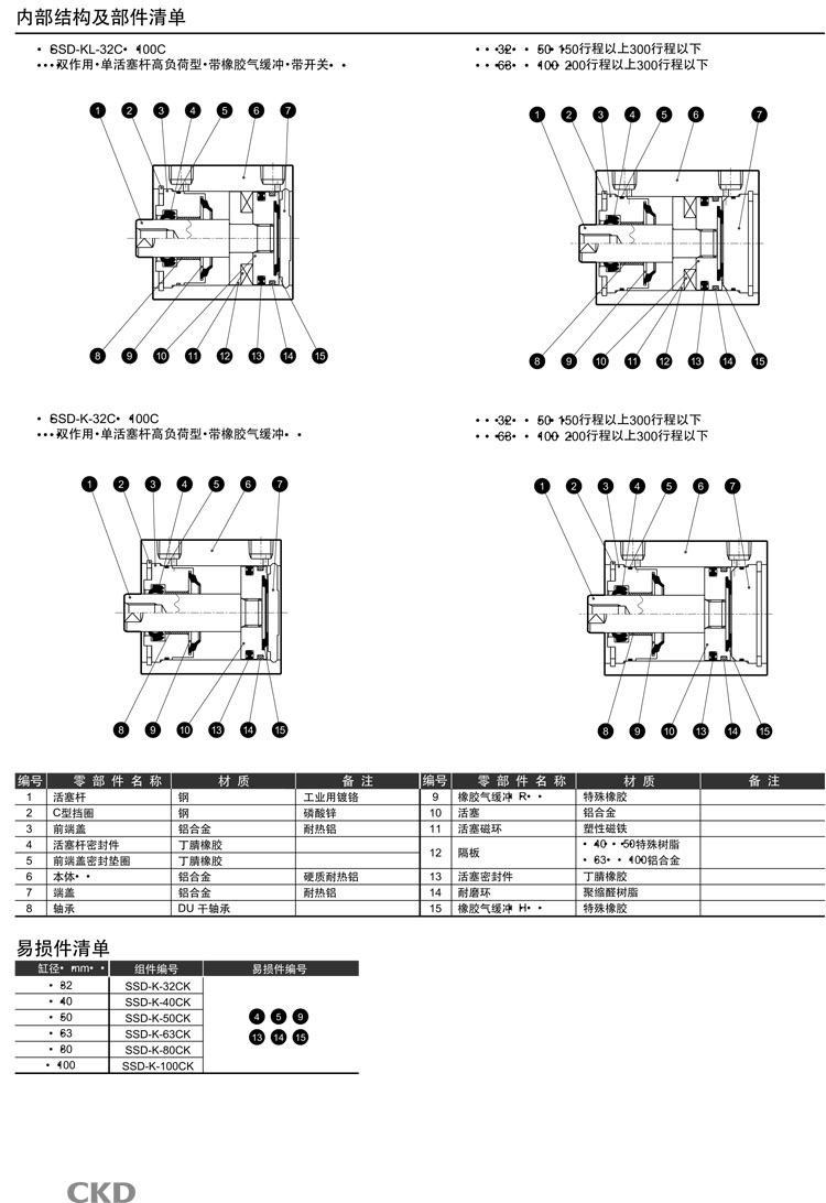 SSD-KL-20,SSD-KL-25,SSD-KL-32,SSD-KL-40,SSD-KL-50,SSD-KL-63,SSD-KL-80,SSD-KL-100,CKD超緊湊型氣缸