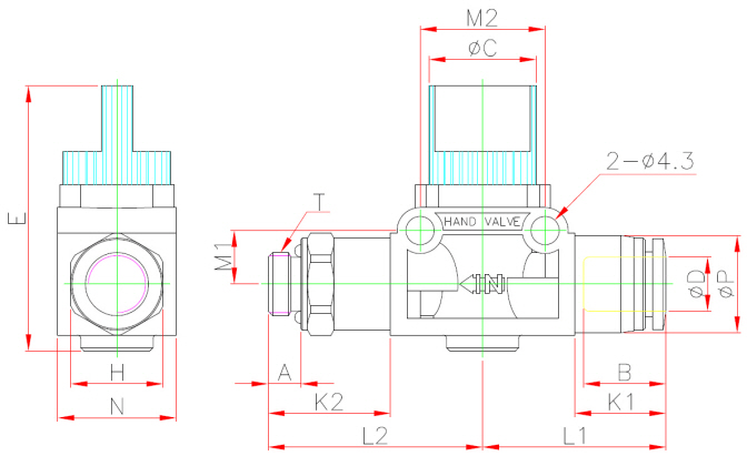 Model | ¢D | T | ¢P | H(Hex) | ¢C | N | E | B | A | K1 | K2 | L1 | L2 | M1 | M2 | WEIGHT(g) | BOX(EA) |