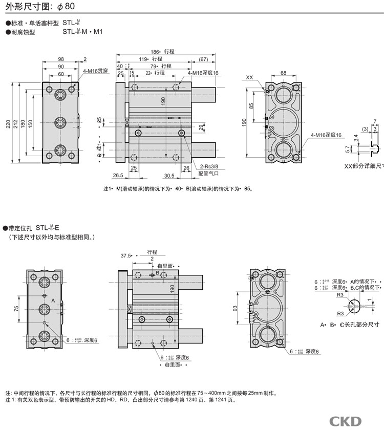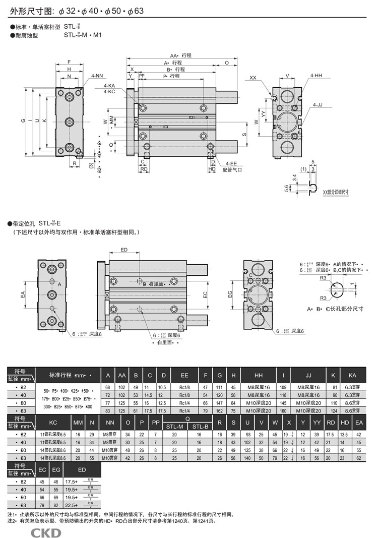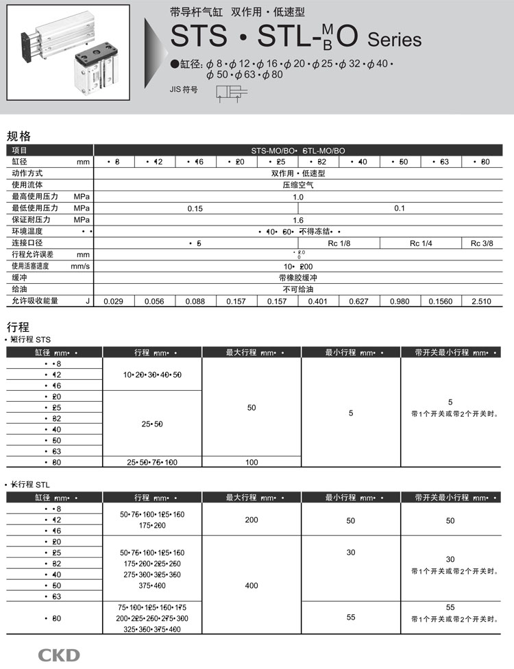 STL-BO-63-50,STL-BO-63-75,STL-BO-63-100,STL-BO-63-125,STL-BO-63-150,STL-BO-63-175,STL-BO-63-200,CKD帶導桿氣缸
