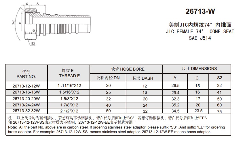 26713-12-12W,26713-16-16W,26713-20-20W,26713-24-24W,26713-32-32W,扣壓式軟管接頭