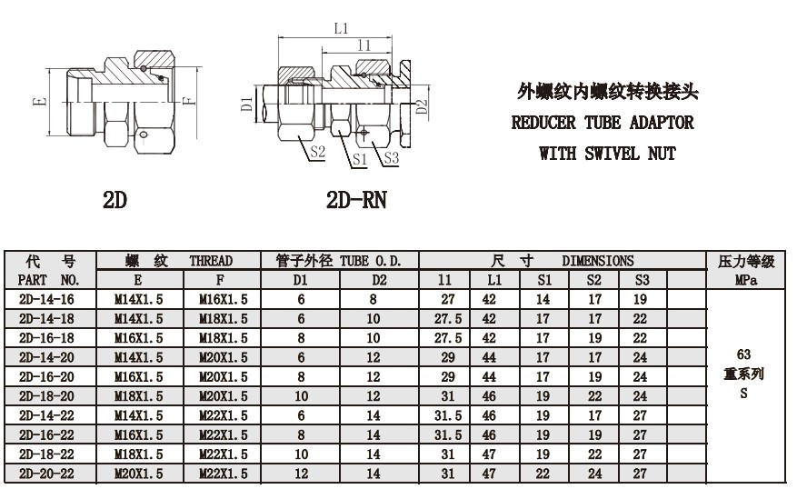 2D-14-16,2D-16-18,2D-18-20,2D-20-22,2D-30-36,2D-36-52,2D-42-52,內(nèi)螺紋轉(zhuǎn)換接頭