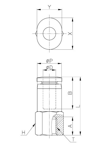 Model | ¢D | ¢P | T | L | A | B | H(Hex) | X | Y | ORIFICE | WEIGHT(g) | BOX(EA) |