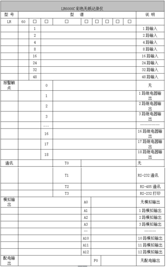 LR6000C系列彩色壓力記錄儀48路(不含報警,變送等其它功能)萬能輸入(可組態(tài)選擇輸入:標(biāo)準(zhǔn)電壓、標(biāo)準(zhǔn)電流、熱電偶、熱電阻、頻率、毫伏等)??蓭?8路報警輸出,12個變送輸出,RS232/485通訊接口,以太網(wǎng)接口,微型打印機(jī)接口和USB接口,SD卡插座;可提供傳感器配電;具有強(qiáng)大的顯示功能,實(shí)時曲線顯示,歷史曲線追憶,棒圖顯示,報警列表顯示。人性化的外觀設(shè)計、完美的功能體現(xiàn)、可靠的硬件品質(zhì)、精湛的制造工藝,使LR6000C具有更高的性能價格比。