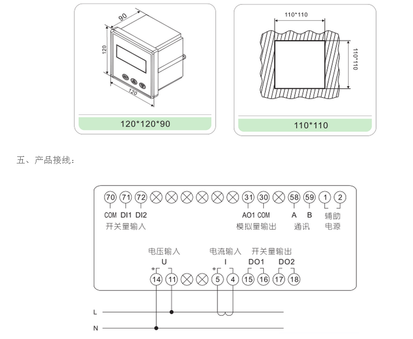 擴(kuò)展:AC5A以上需配電流互感器,AC500V以上需配電壓互感器,現(xiàn)場可編程設(shè)置輸入?yún)?shù)變比。