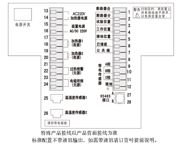 3、在自動加熱除濕狀態(tài)下,當環(huán)境濕度高于濕度設定值,達到形成凝露條件時,啟動加熱器,同時加熱器接點閉合;當環(huán)境濕度不在滿足凝露條件時,裝置自動停止加熱;
