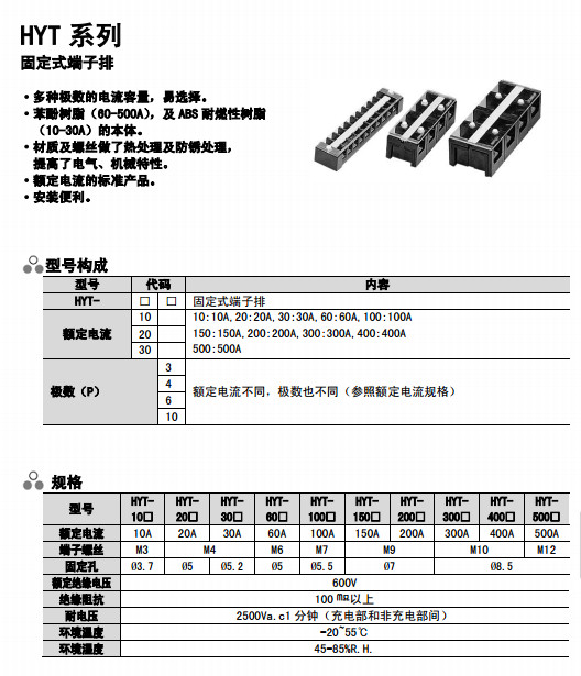 HYT-203,HYT-204,HYT-206,HYT-2010,HYT-2012,HYT-2015,HYT-2020,固定式端子排