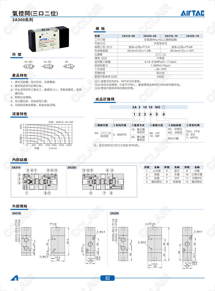 3A310-08-NC,3A310-08-NO,3A310-10-NC,3A310-10-NO,3A320-08,3A320-10,AIRTAC氣控閥