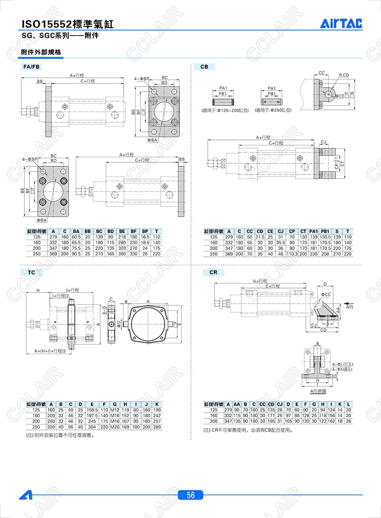 LB125,CA125,FA/FB125,CB125,TC125,CR125,FTC125,TCM1125,TCM2125,AIRTAC亞德客標(biāo)準(zhǔn)氣缸附件