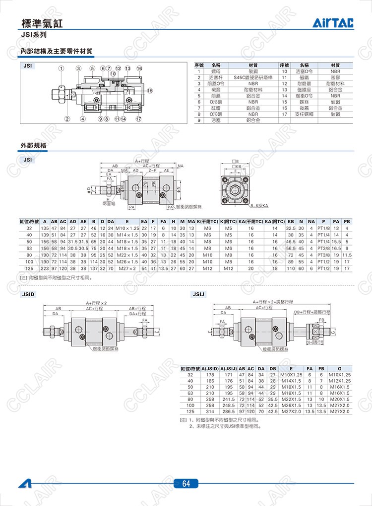 JSI32*25,JSI32*25-S,JSID32*25,JSID32*25-S,JSIJ32*25,JSIJ32*25-S,AIRTAC亞德客標準氣缸