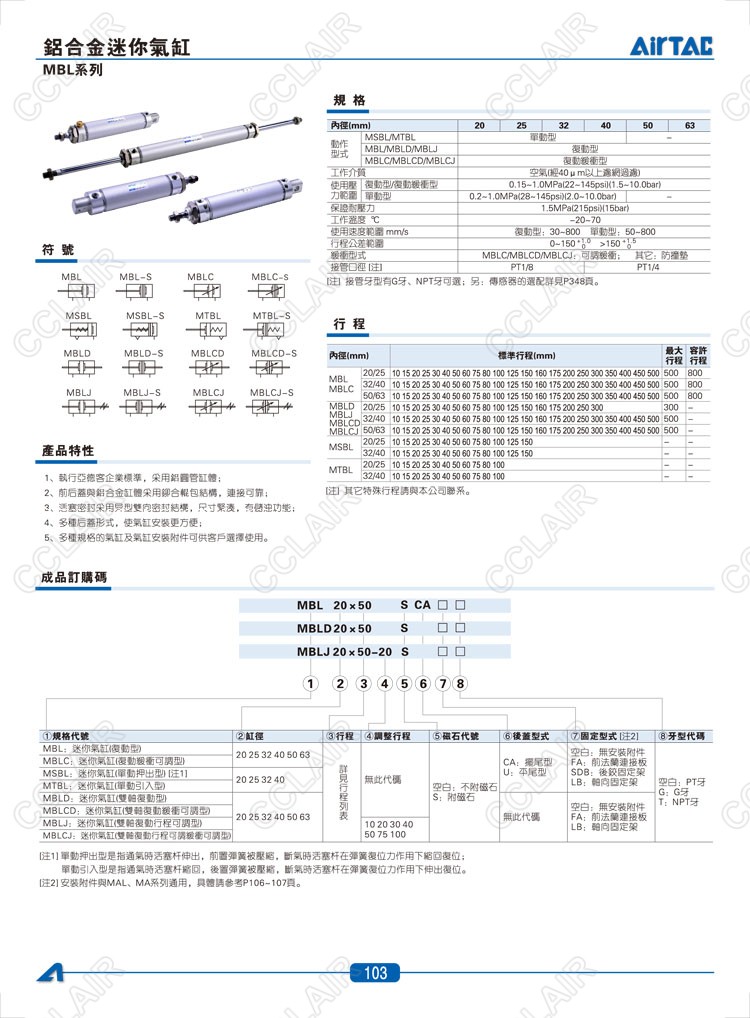 MBL20*10-CA,MBLC20*10-CM,MBLD20*10,MBLCD20*10,MBLCJ20*10,MSBL20*10-U,MTBL20*10-U,AIRTAC亞德客迷你氣缸