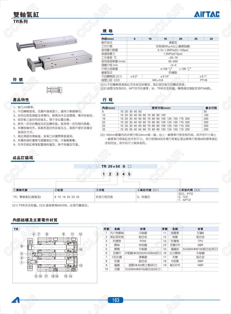 TR10*10-S,TR16*10-S,TR20*10-S,TR25*10-S,TR32*10-S,AIRTAC亞德客雙軸氣缸