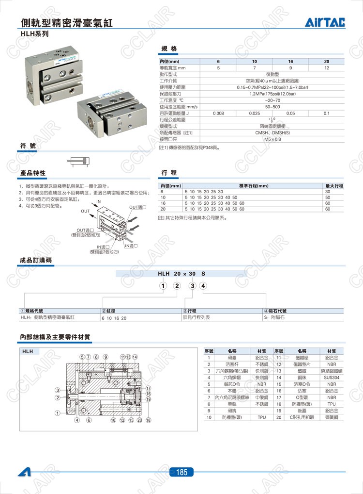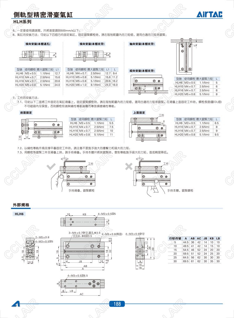 HLH6*5-S,HLH6*10-S,HLH6*15-S,HLH6*20-S,HLH6*25-S,AIRTAC亞德客側(cè)軌型精密滑臺(tái)氣缸