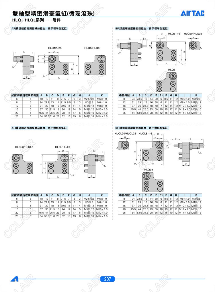 F-HLQ6AS,F-HLQ8AS,F-HLQ12AS,F-HLQ8BS,F-HLQ12BS,F-HLQ16BS,AIRTAC亞德客雙軸型精密滑臺(tái)氣缸附件