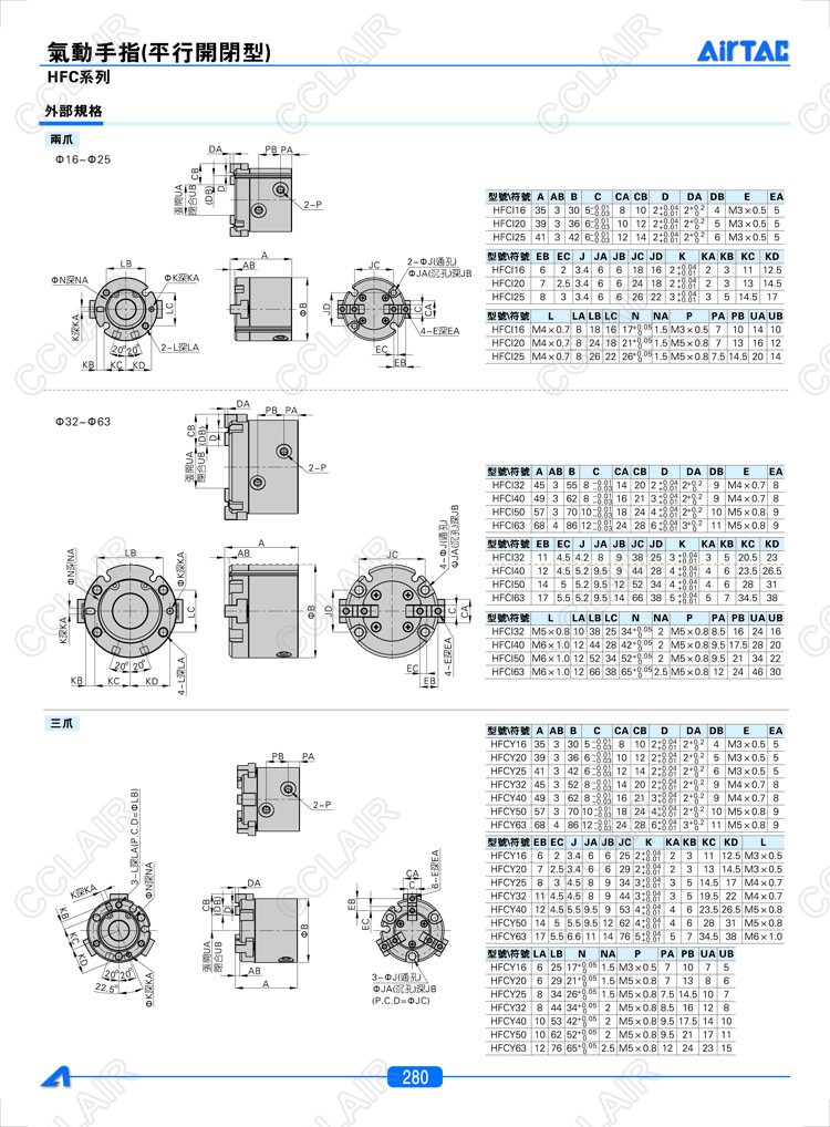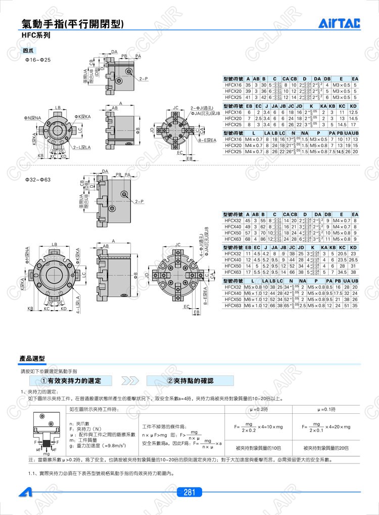 亞德客AIRTAC,HFCI16,HFCI20,HFCY25,HFCY32,HFCX40,HFCX50,氣動手指