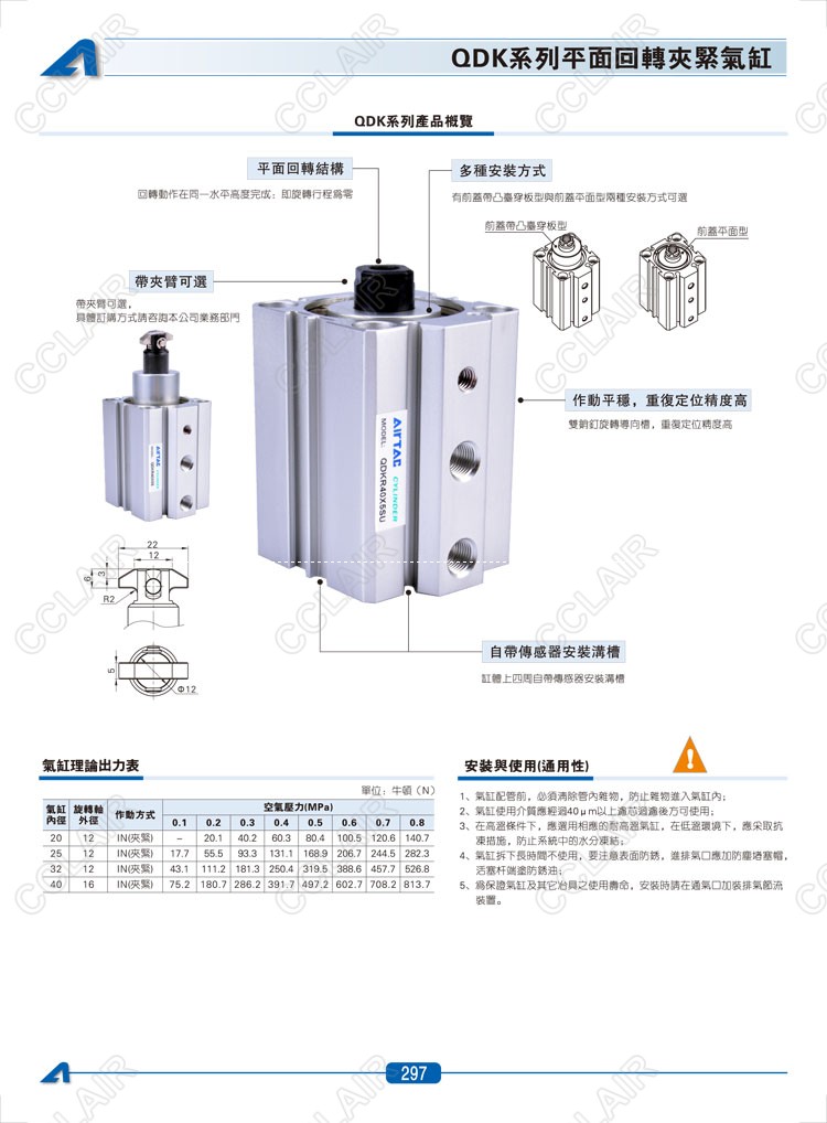 亞德客AIRTAC,QDKL20*5-S,QDKR20*5-S,QDKL25*5-S,QDKR25*5-S,QDKL32*5-S,平面回轉(zhuǎn)夾緊氣缸