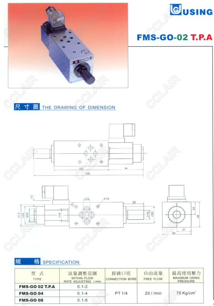 USING峰欣 FMS-GO02T.P.A,FMS-GO04,FMS-GO08,流量控制閥