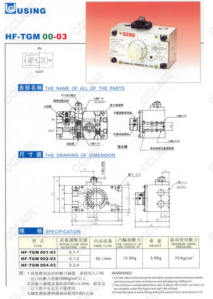 USING峰欣 HF-TGM001-03,HF-TGM002-03,HF-TGM004-03,流量控制閥