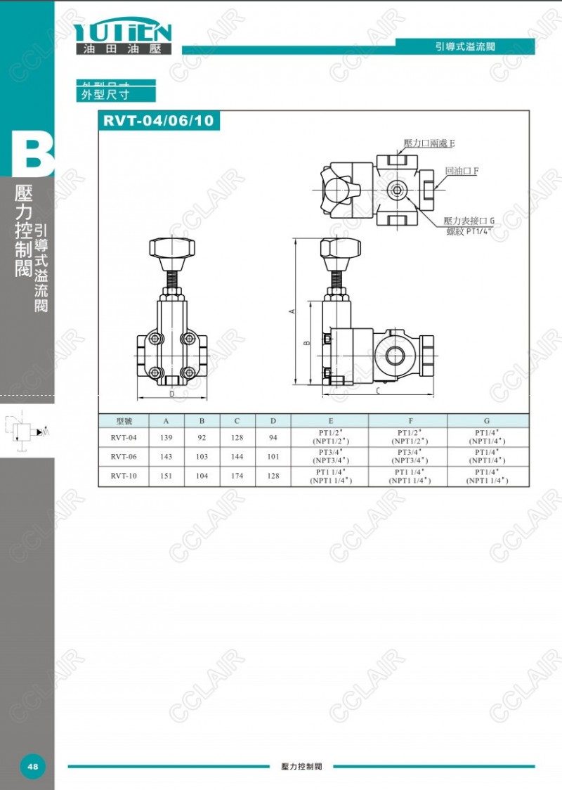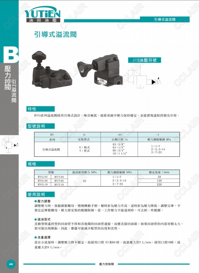 YUTIEN油田引導(dǎo)式溢流閥RVG-03-1,RVG-06-2,RVG-10-3,RVT-04-1,RVT-06-2,RVT-10-3