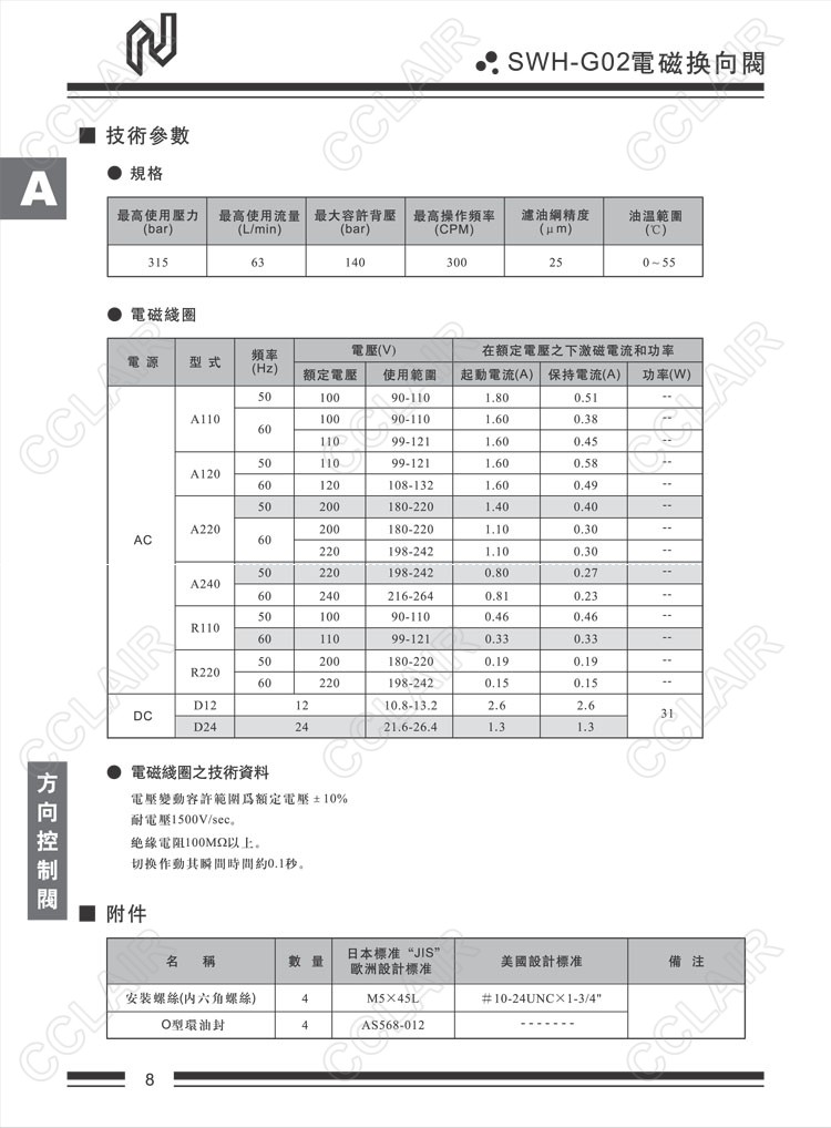 Northman臺(tái)灣北部精機(jī),電磁換向閥SWH-G02-C2-A240-10,SWH-G02-C2M-A120-20,SWH-G02-C22M-A110-20-LS,SWH-G02-C3-R110-20-LS,SWH-G02-C3-I-D12-10,SWH-G02-C4-A240-10,SWH-G02-C4B-R240-20-LS, SWH-G02-C8SB-R240-20-LS,SWH-G02-C8BS-A110-10-LS,SWH-G02-D3-R110-10-LS