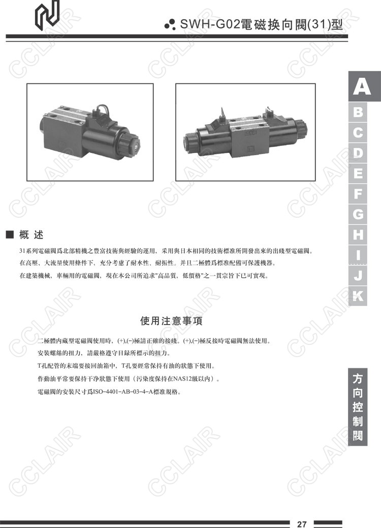 Northman臺灣北部精機(jī),電磁換向閥(31型)SWH-G02-C2-D12-31-F-D-C0,SWH-G02-C3-D12-31-D-C1,SWH-G02-C40-D24-31-D-C1,SWH-G02-C6-D24-31-D-C0,SWH-G02-C8-D12-31-D-C0,SWH-G02-C4B-D24-31-F-D-C1, SWH-G02-C5B-D24-31-F-D-C0,SWH-G02-C60BS-D24-31-D-C0,SWH-G02-C9S-D12-31-D-C1