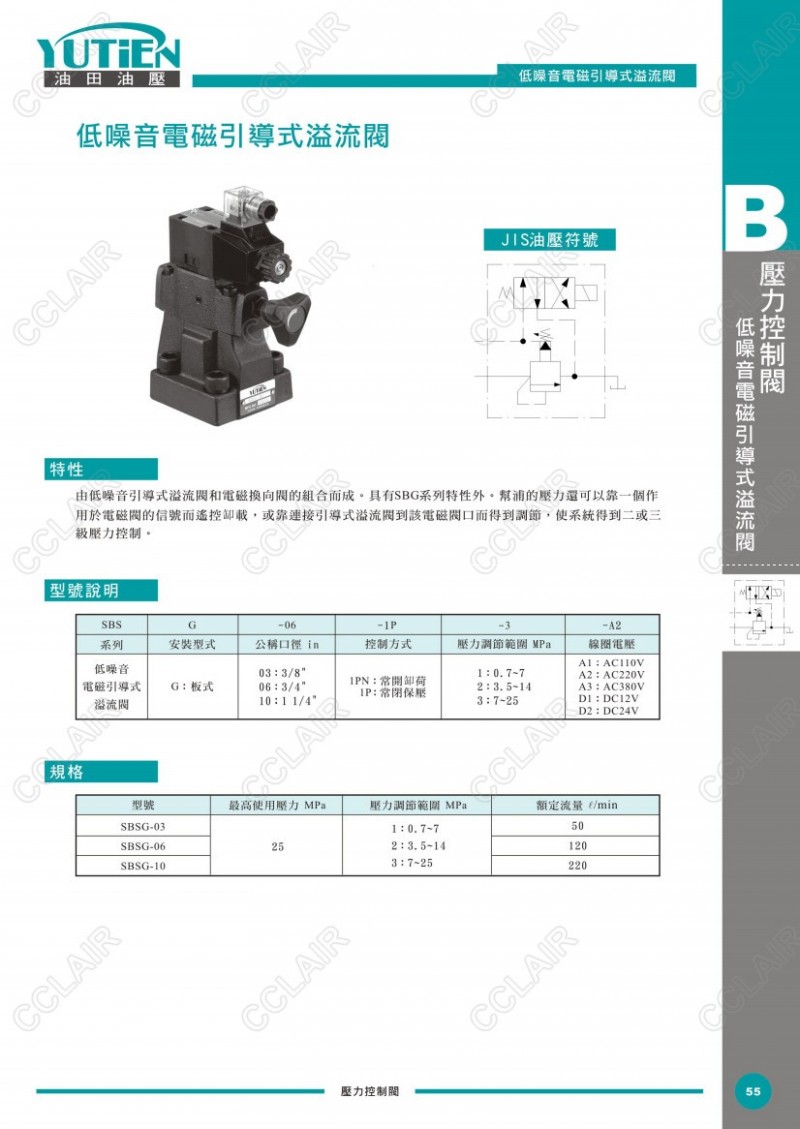 YUTIEN油田低噪音電磁引導(dǎo)式溢流閥SBSG-03-1PN-1,SBSG-03-1P-2,SBSG-06-1PN-3,SBSG-10-1PN-2