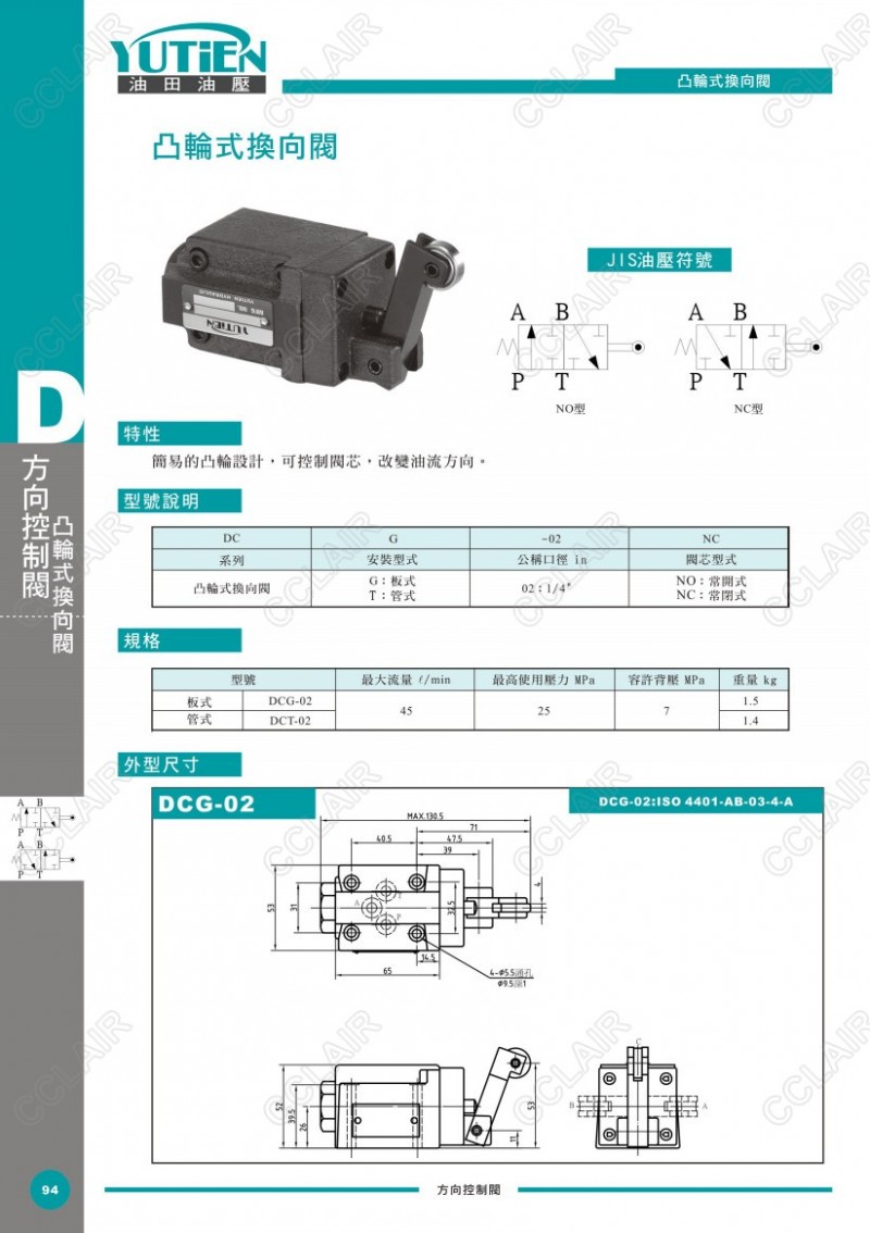 YUTIEN油田凸輪式換向閥DCG-02-NO,DCG-02-NC,DCT-02-NO,DCT-02-NC