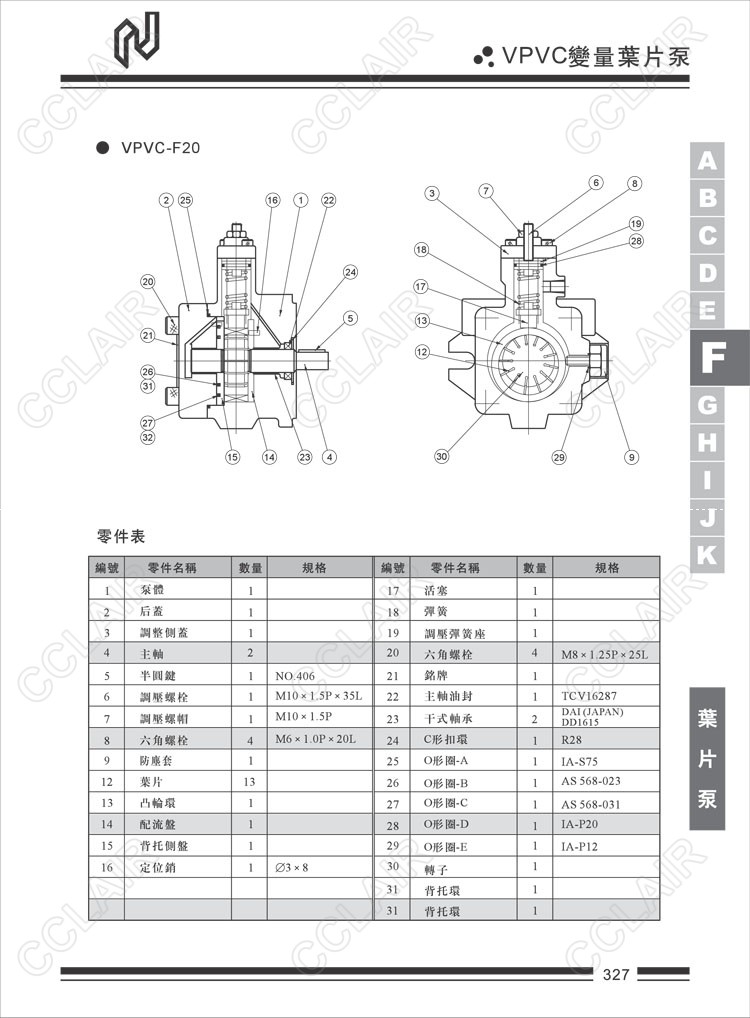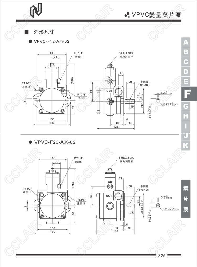 Northman臺灣北部精機,變量葉片泵VPVC-F12-A1-02,VPVC-F12-A2-02,VPVC-F12-A3-02,VPVC-F20-A1-02,VPVC-F20-A2-02,VPVC-F20-A3-02